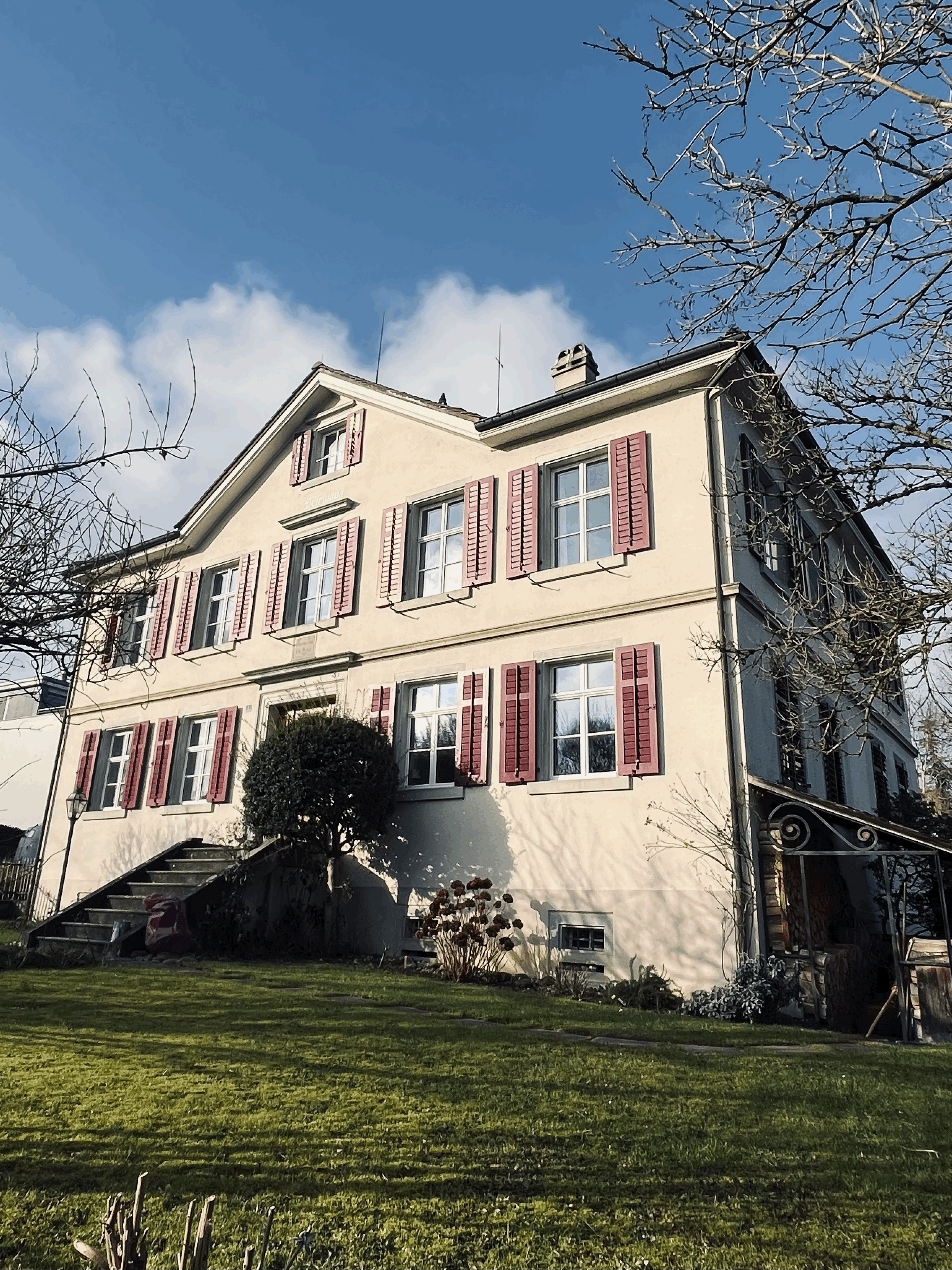 Die Praxisräume befinden sich in einem geschichtsträchtigen Haus aus dem Jahre 1843. Es ist im klassizistischen Stil gebaut und war sowohl Handelshaus, Sitz eines Grafen und später eine Pension. 1981 wurde das Haus total saniert und dient neben dem Wohnsitz für Privatpersonen gesundheitsfördernden und heilenden Zwecken.